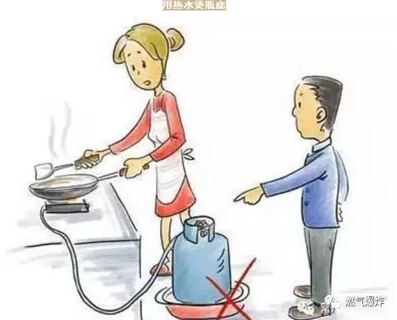 这种情况在冬季发生得比较多。为了使液化气火烧旺起来,有的用户用热水浇烫、火烤钢瓶的方法,尤其是用火烤钢瓶,会使钢瓶失去应有的强度,很容易导致钢瓶爆炸。